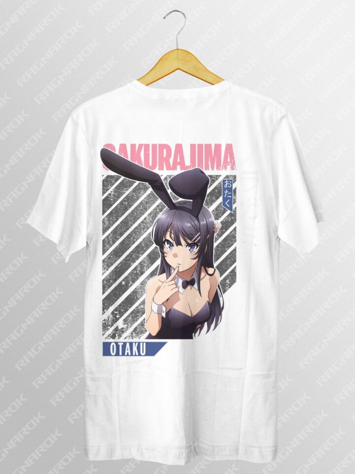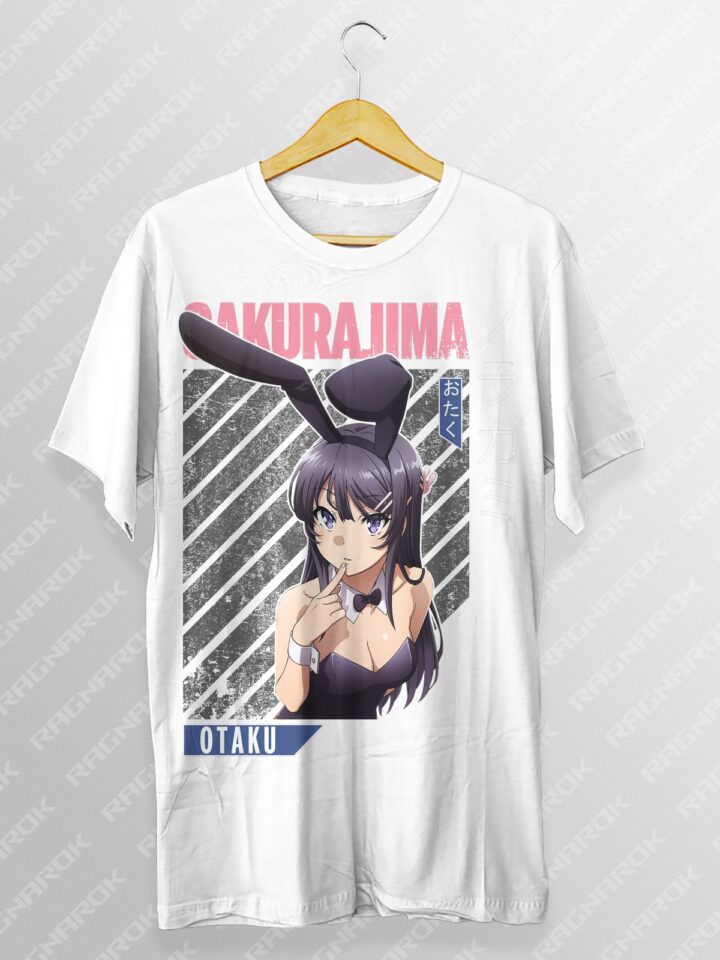 Embrace the spirit of your favorite anime with this captivating Bunny Girl Senpai T-shirt featuring Mai Sakurajima. Perfect for anime fans and streetwear enthusiasts alike.
