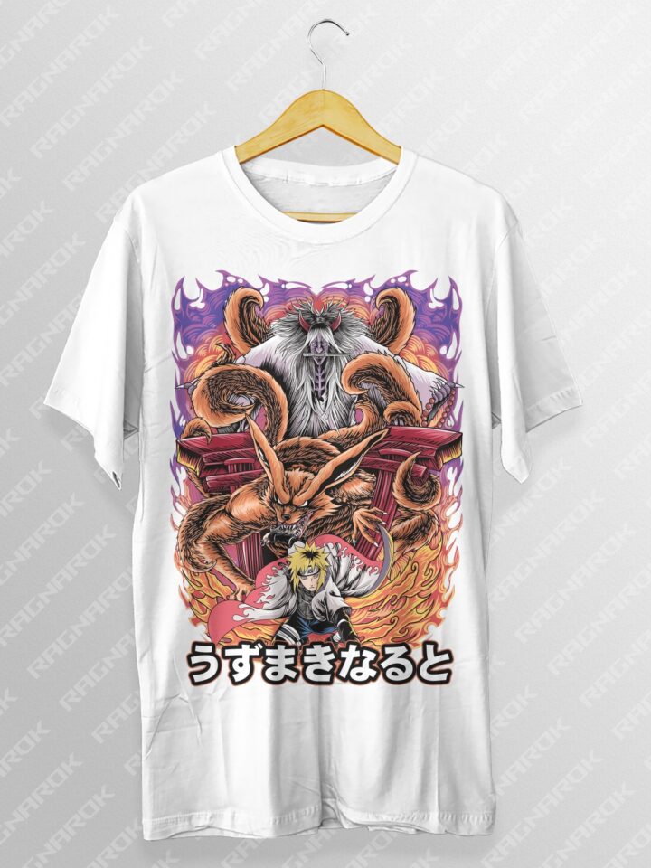 Dive into the world of Naruto with this stunning T-shirt showcasing the legendary Naruto Uzumaki and the powerful Tailed Beasts. Perfect for anime enthusiasts and collectors alike!